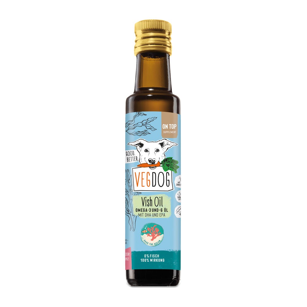 • VEGDOG VISH OIL mit wertvollem Hanf-, Algen- und Leinöl