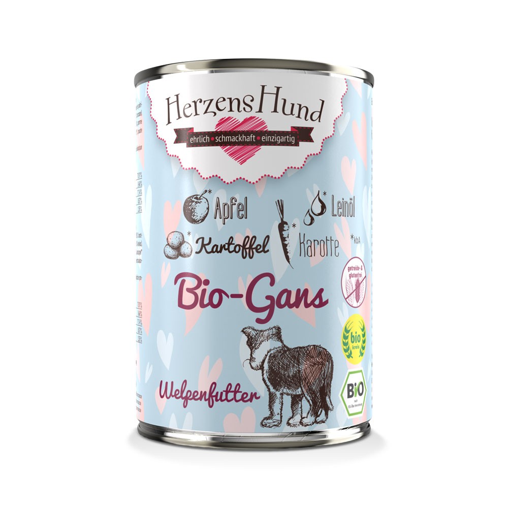 Bio Gans mit Apfel 400g Hund Nassfutter Herzenshund