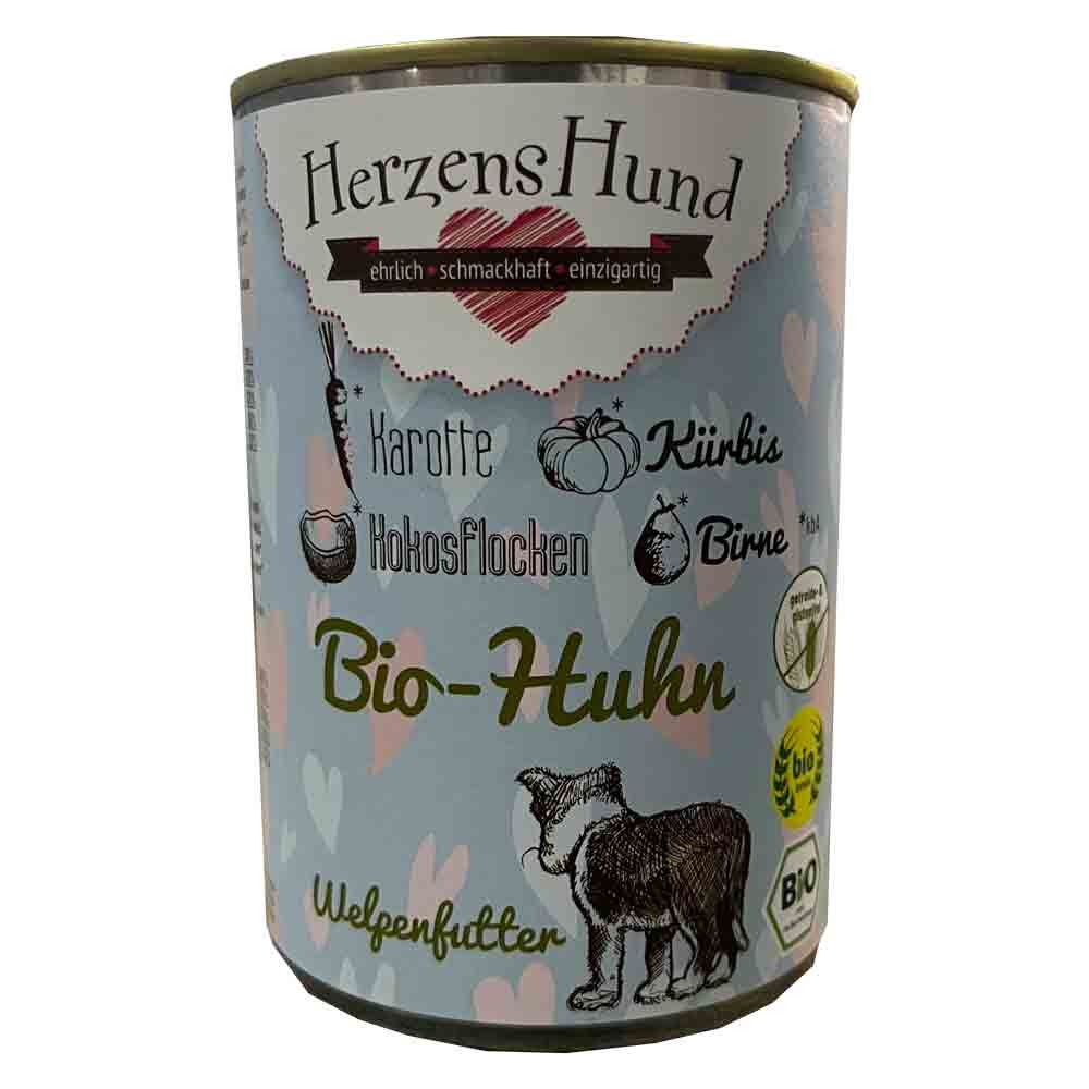 Bio Huhn mit Karotte 400g Hund Nassfutter Herzenshund