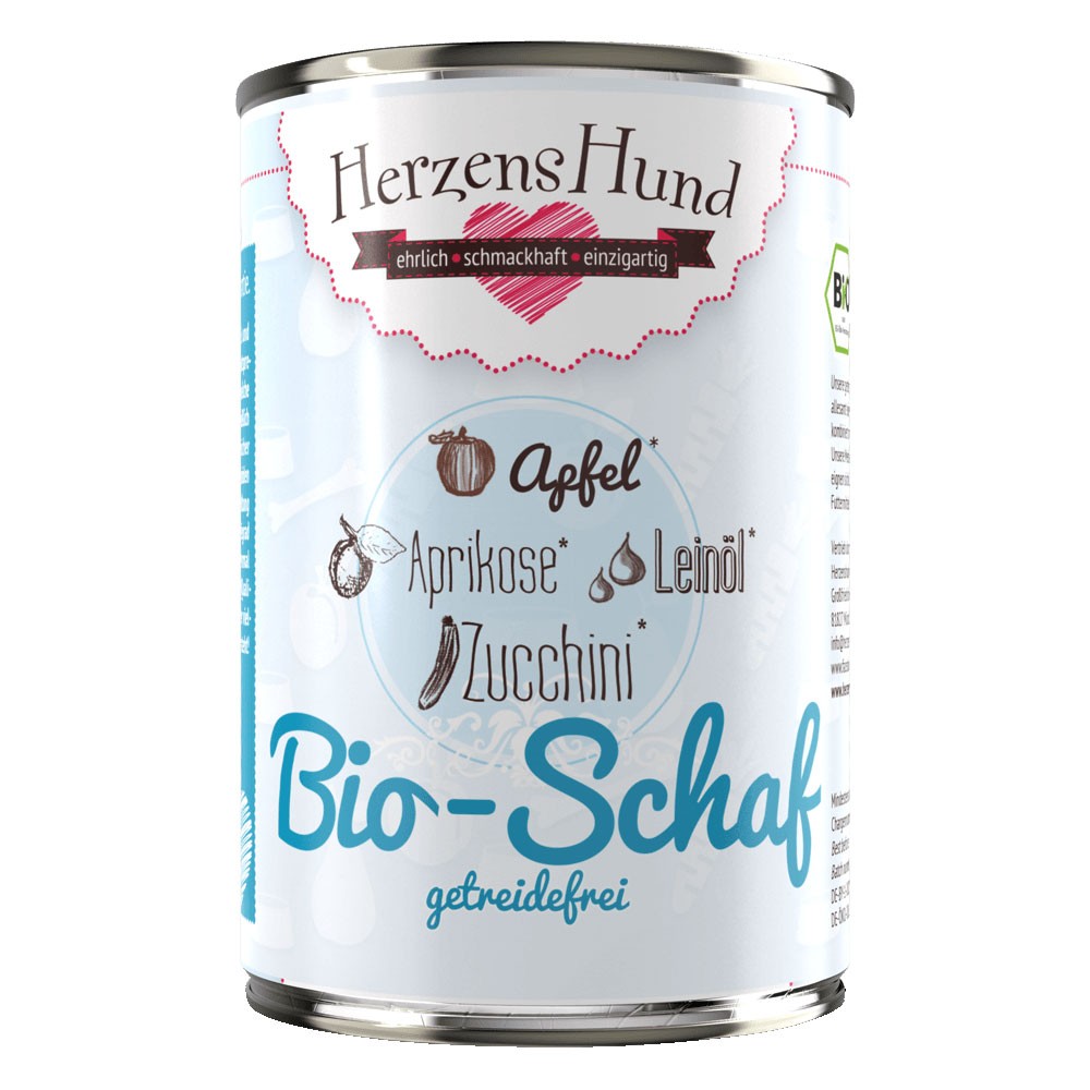 Bio Schaf mit Apfel 400g Hund Nassfutter Herzenshund