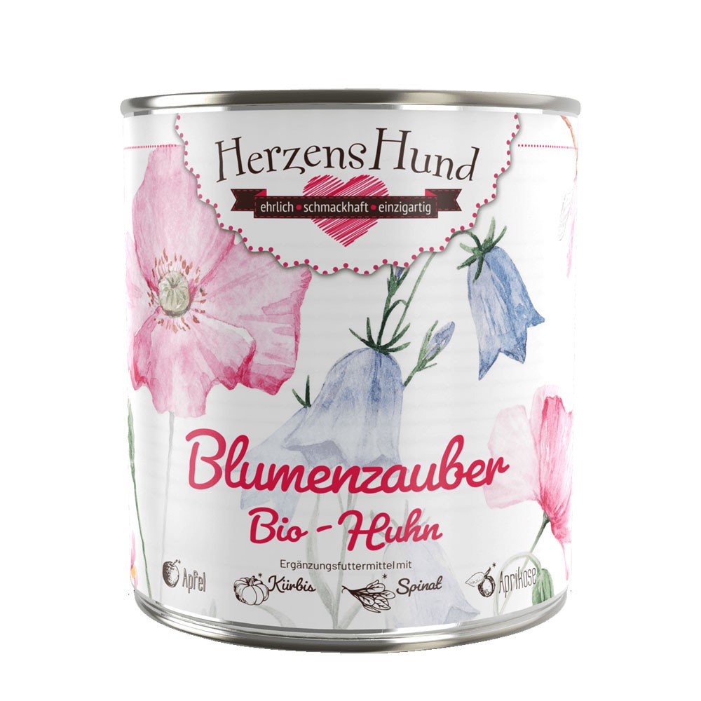 Blumenzauber Bio Huhn mit Obst u. Gemüse u. Blütenpollen 800g Hund Nassfutter Herzenshund