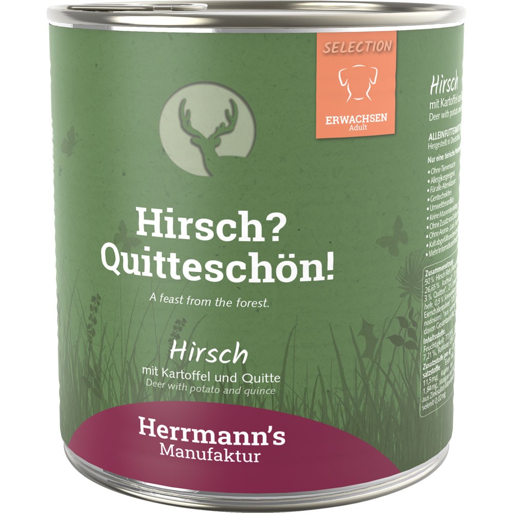 Hirsch NICHT BIO mit Kartoffel Zucchini Quitten 800g Hund Nassfutter Herrmann