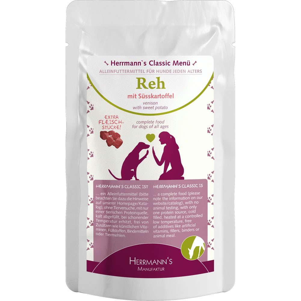 Reh NICHT BIO mit Süßkartoffeln 130g Hund Nassfutter Herrmann