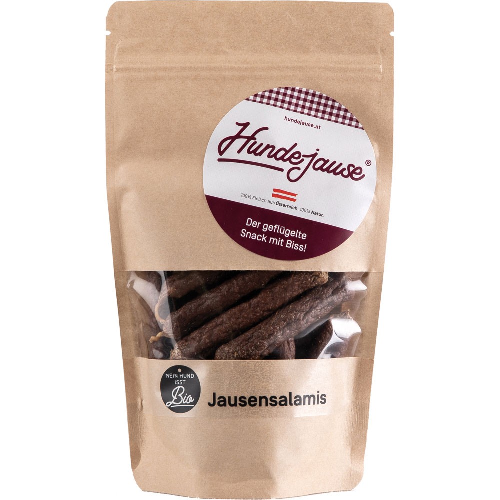 Als Zwischensnack oder zur Belohnung besticht die Jausensalami durch ihren frischen Geschmack und sie werden schnell erkennen, dass ihr Hund weiß wann’s um die Wurst geht! Die BIO-Jausensalami besteht zu 100% aus feinstem und bestem BIO-Material.