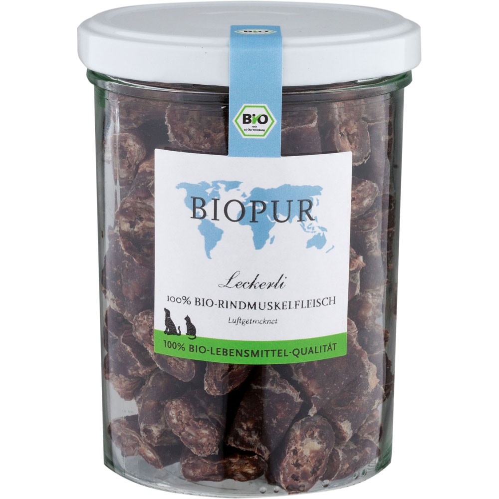 Bio Rindswurst geschnitten Leckerli im Glas 180g Hund Snack Biopur