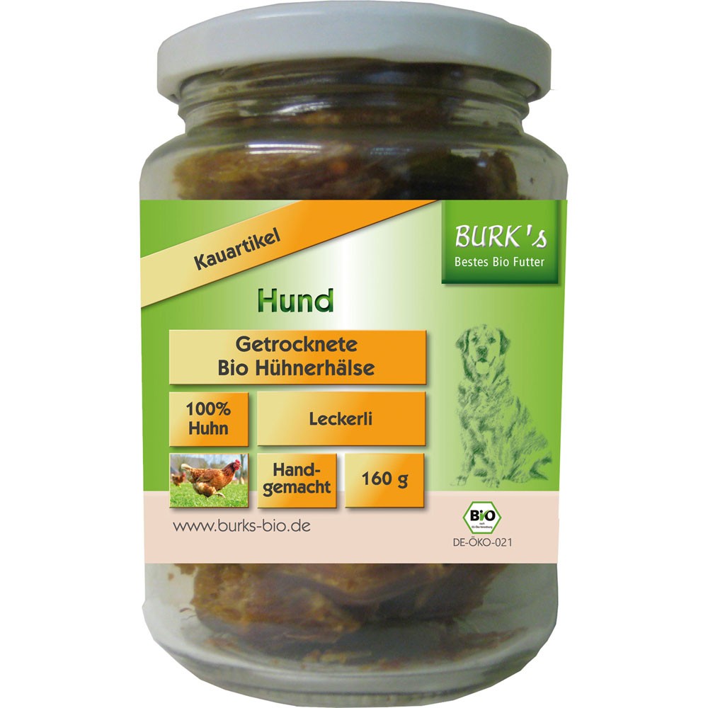 Getrocknete Bio Hühnerhälse 160g Hund Snack Burk's