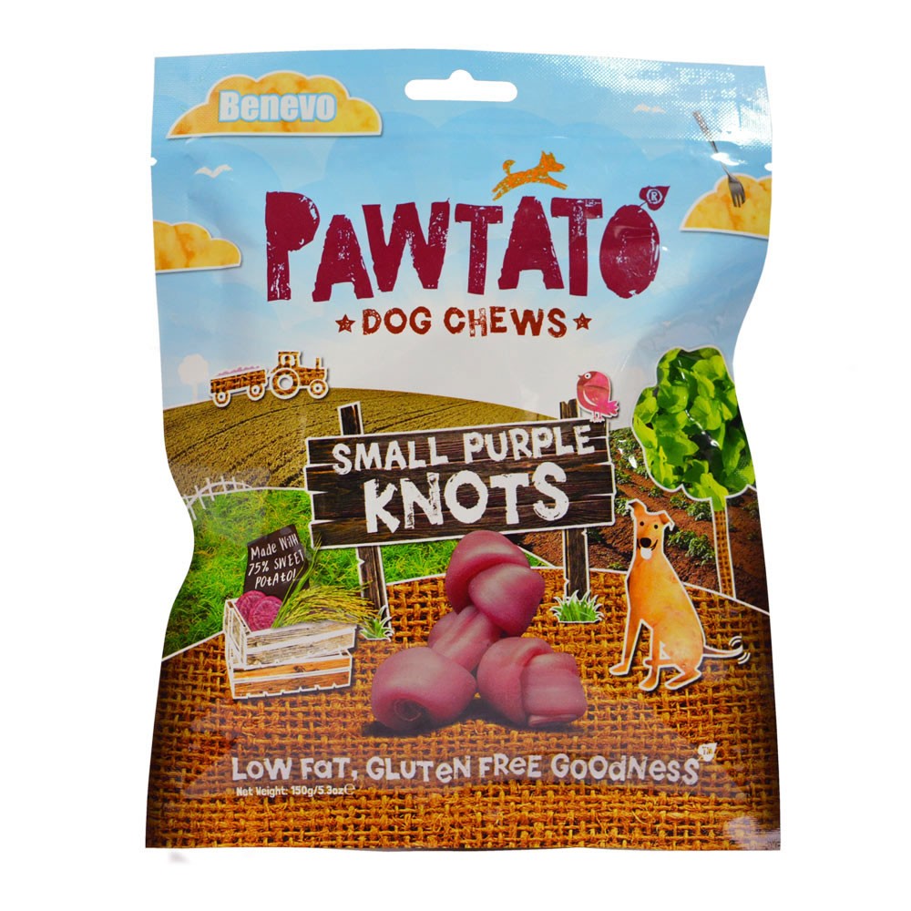 Veganer Süßkartoffelknochen (klein violett) -Pawtato Purple Knots- NICHT BIO 150g Hund Snack Pawtato