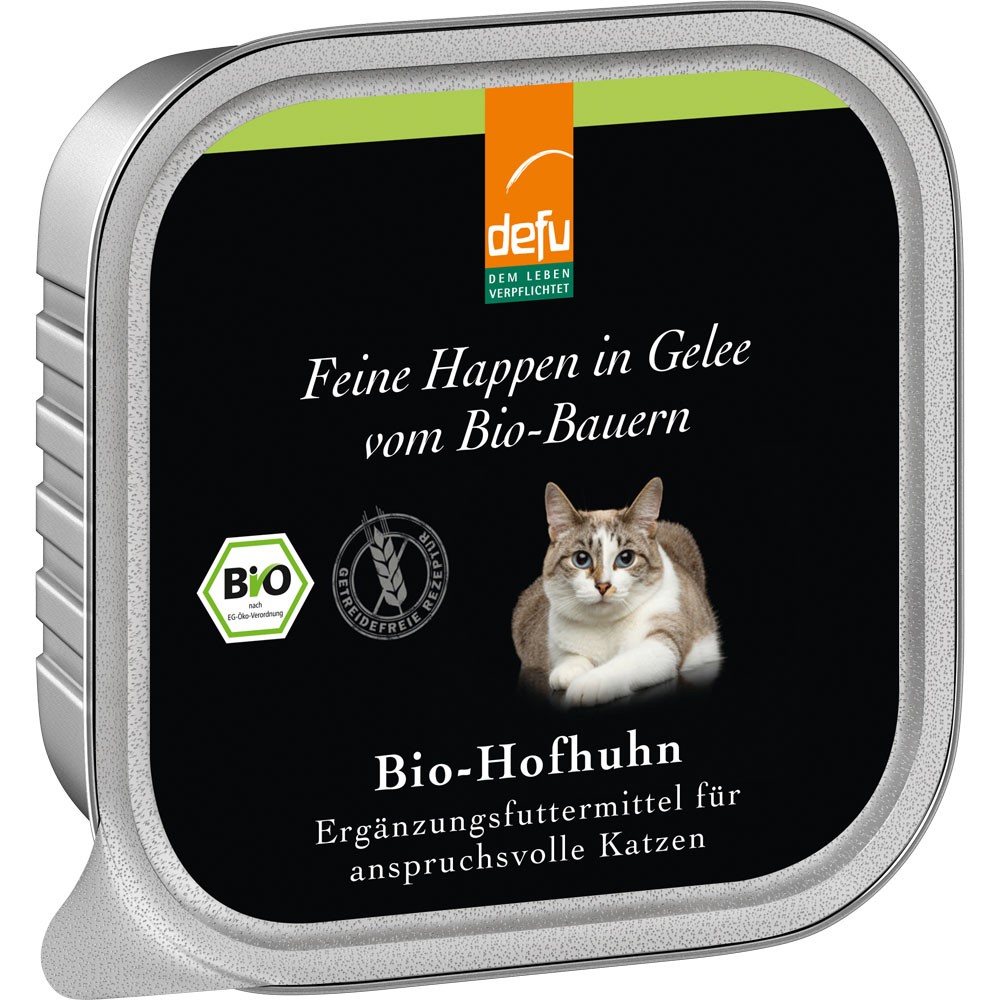Bio Hofhuhn in Gelee Ergänzungsfutter 100g Katze Nassfutter defu
