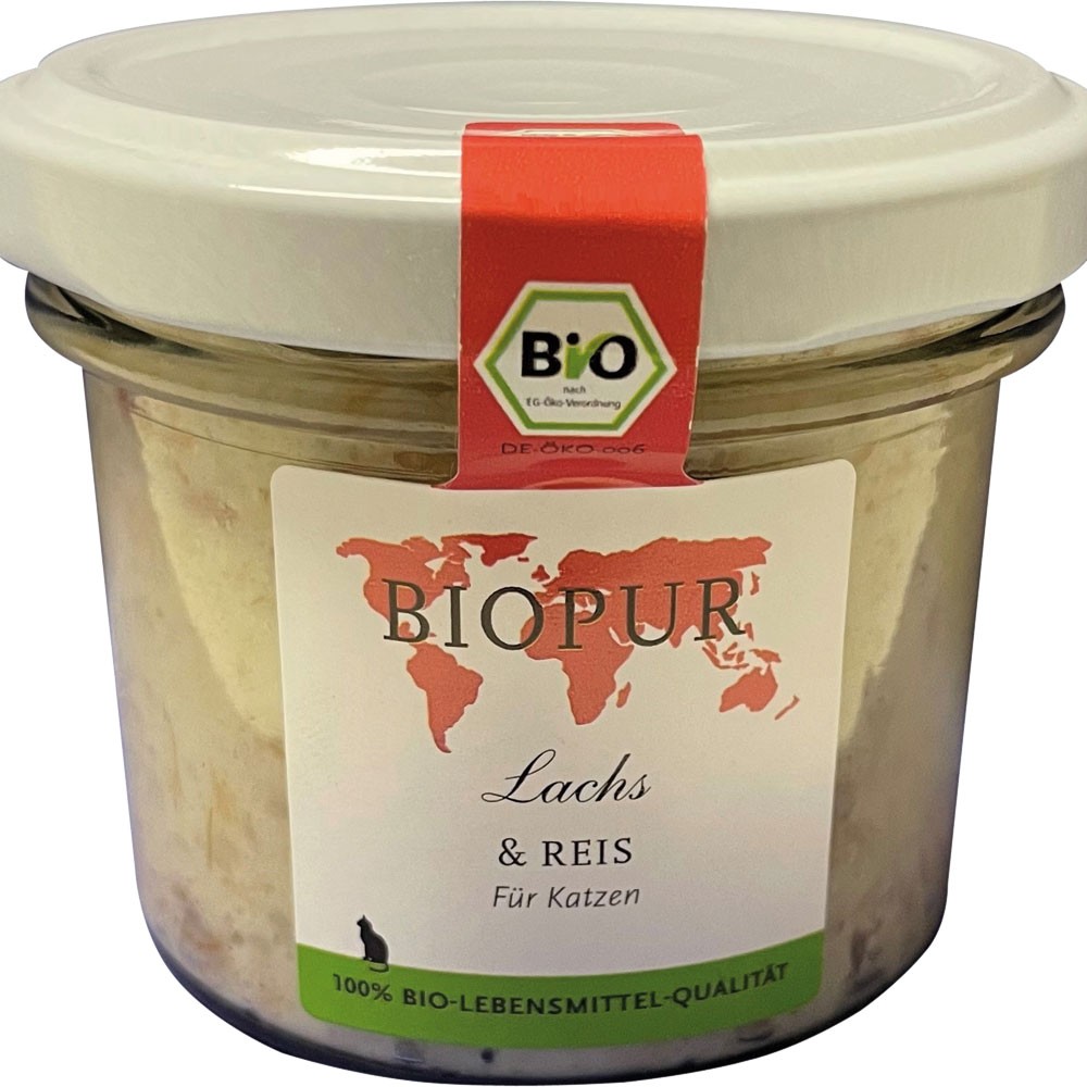 Bio Lachs & Reis 100g im GLAS (!!!) glutenfrei Katze Nassfutter Biopur