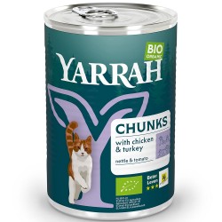 Schmackhafte Bröckchen von Huhn und Truthahn mit Nessel und Tomate, geeignet für Katzen aller Rassen und Altersgruppen.
