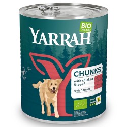 Bröckchen mit biologischem Huhn und Rind, die mit Nessel und Tomate angereichert sind, um der Mahlzeit ihres Hundes mehr Struktur zu verleihen. Geeignet für Hunde aller Rassen und Altersgruppen, sowohl für Welpen als auch für ältere Hunde.