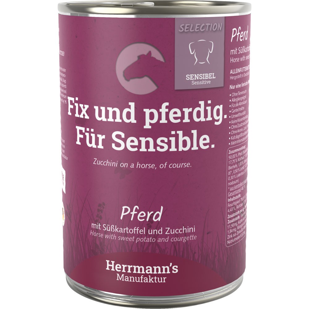 48er-SET Pferd NICHT BIO mit Süsskartoffel Zucchini und Leinöl 400g Hund Nassfutter Herrmann